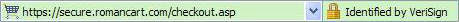 A key aspect of a shopping cart is the security. RomanCart uses min 128bit SSL EV encryption which gives Green Bar security. This shows your customers (using compatible browsers) a green colour in the address bar just like you see on eBay and PayPal. This level of security increases customer confidence and is proven to increase customer conversion rates and therefore your sales.